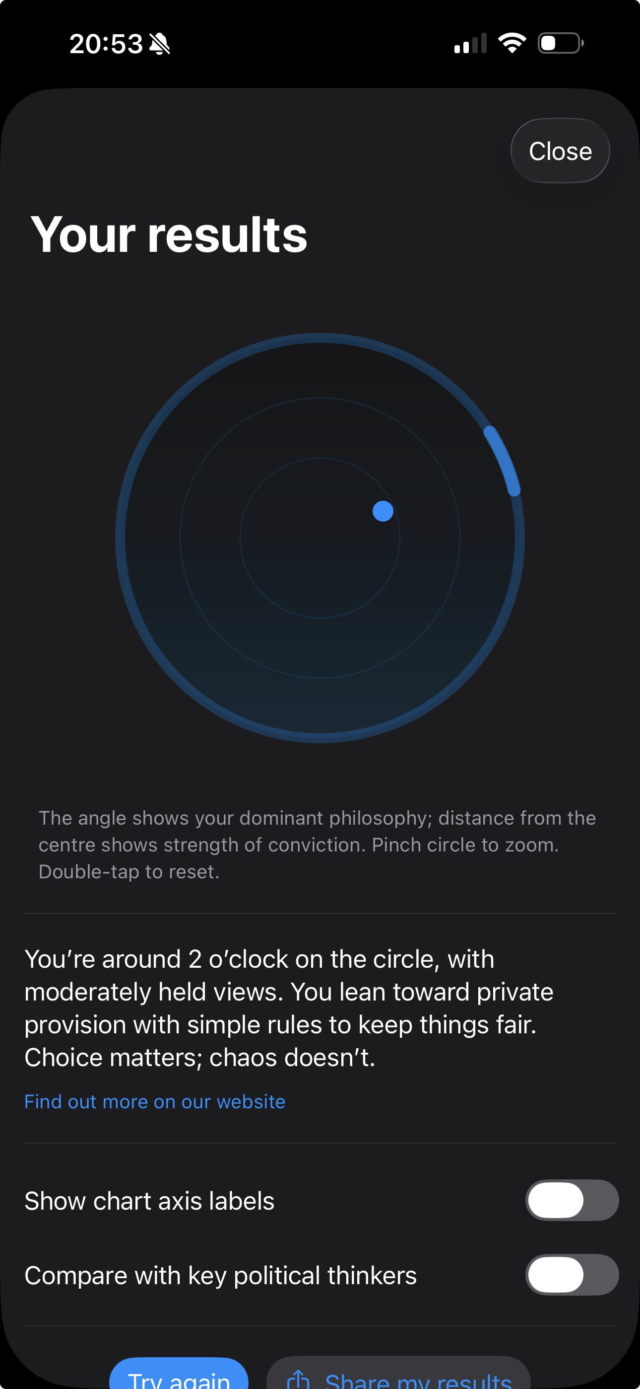 Political Circle maps your views across multiple dimensions - social, economic, environmental - giving you an accurate picture of where you really stand, not where outdated quizzes think you should be.